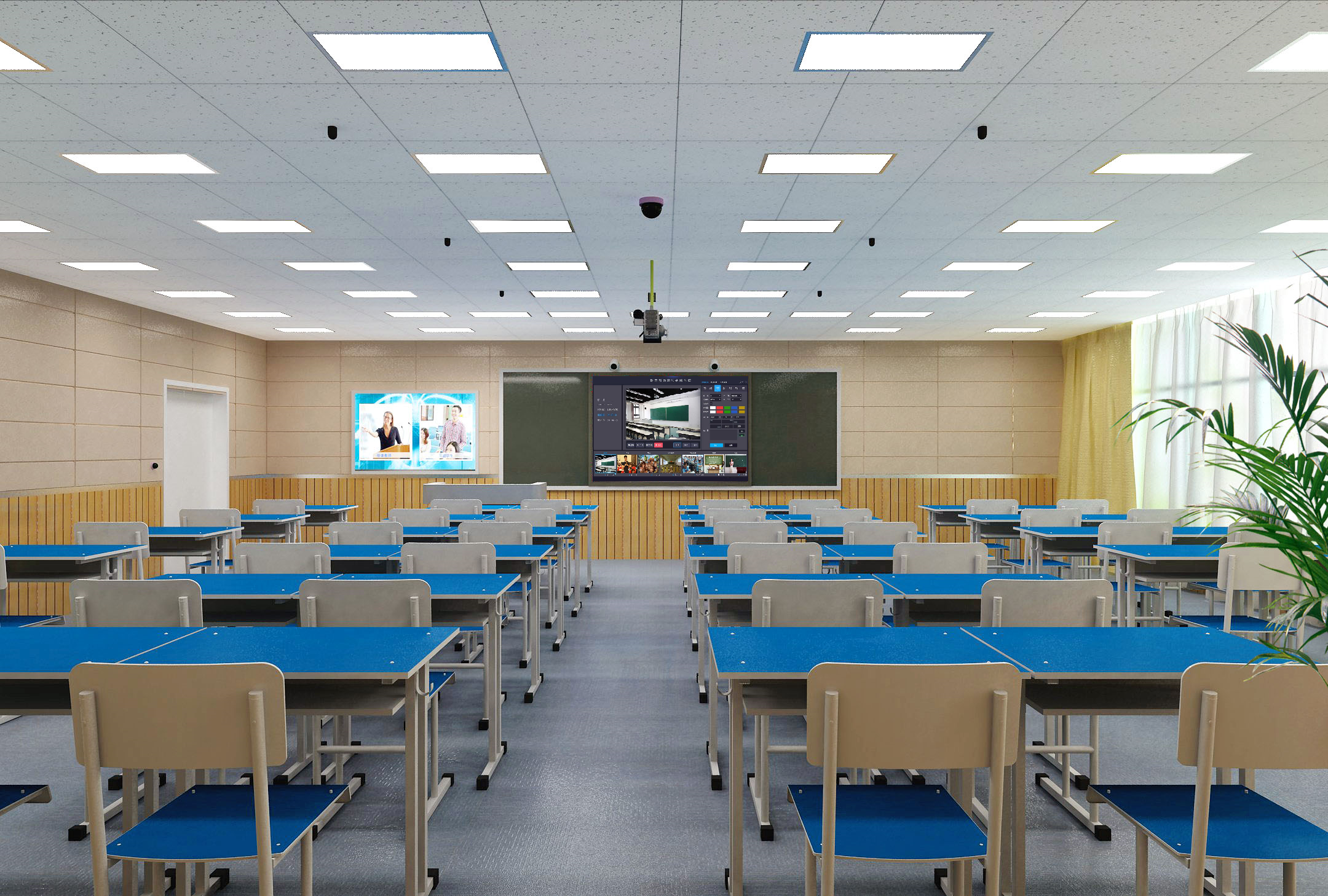 环境中控管理:对灯光、屏幕、电源、窗帘等周边设备控制、运行状态读取。